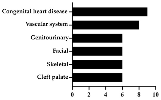 Most frequently observed additional malformations in children diagnosed with syndromic CDH.