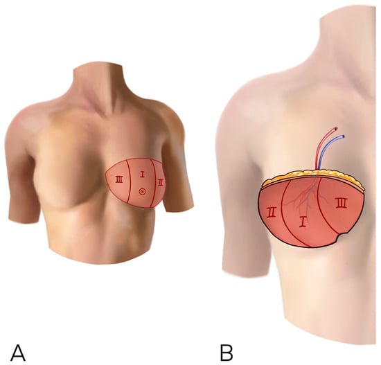 - Blondeel, P.N.; Boeckx, W.D. Refinements in free flap breast reconstruction: The free bilateral deep inferior epigastric perforator flap anastomosed to the internal mammary artery. Br. J. Plast. Surg. 1994, 47, 495–501. [Google Scholar] [CrossRef]