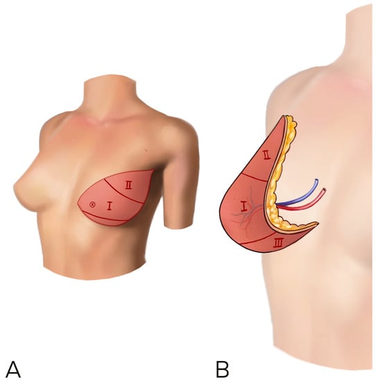 - Blondeel, P.N.; Hijjawi, J.; Depypere, H.; Roche, N.; Van Landuyt, K. Shaping the breast in aesthetic and reconstructive breast surgery: An easy three-step principle. Part IV—Aesthetic breast surgery. Plast. Reconstr. Surg. 2009, 124, 372–382. [Google Scholar] [CrossRef]