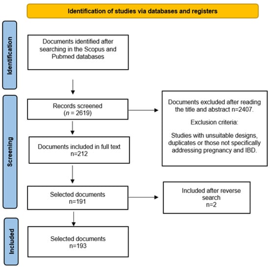 Study Selection: Inclusion and exclusion criteria were implemented. Inclusion criteria comprised studies assessing IBD’s impact on pregnancy, treatment effects during pregnancy, and pregnancy outcomes for women with IBD, among others. Exclusion criteria encompassed studies with unsuitable designs or those not specifically addressing pregnancy and IBD (Figure 1).