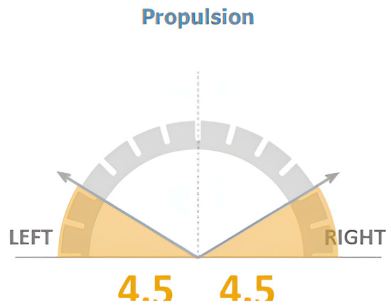 - Propulsion (represented using a blue line), in addition to propulsion index (represented using the slope of the blue line) where more “vertical” lines indicate higher propulsion indices, and thus, better propulsion symmetry between both sides; this is shown in Figure 2 and Figure 3.