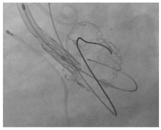 - Kay, R.T.; Linjawi, H.; Butler, C.; Mathew, A.; Muhll, I.V.; Khandekar, S.; Tyrrell, B.D.; Nagendran, J.; Taylor, D.; Welsh, R.C. Transcatheter Aortic Valve Implantation in a Failed Perceval Sutureless Valve, Complicated by Aortic Annular Rupture. CJC Open 2022, 4, 577–580. [Google Scholar] [CrossRef] [PubMed]