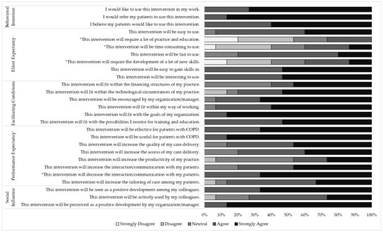 While the providers had more hesitation about whether this technology-based intervention would be suitable for an older patient population, as is typically seen in COPD, most believed it seemed relatively straightforward. We have also shown, for this particular intervention, scant age-related differences concerning the acceptability of the intervention to patients []. There was also strong agreement that their colleagues and organization would see the intervention as a positive addition to their organization.