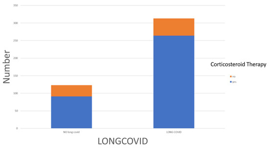 The distribution of corticosteroid therapy among Long COVID and no-Long COVID patients.