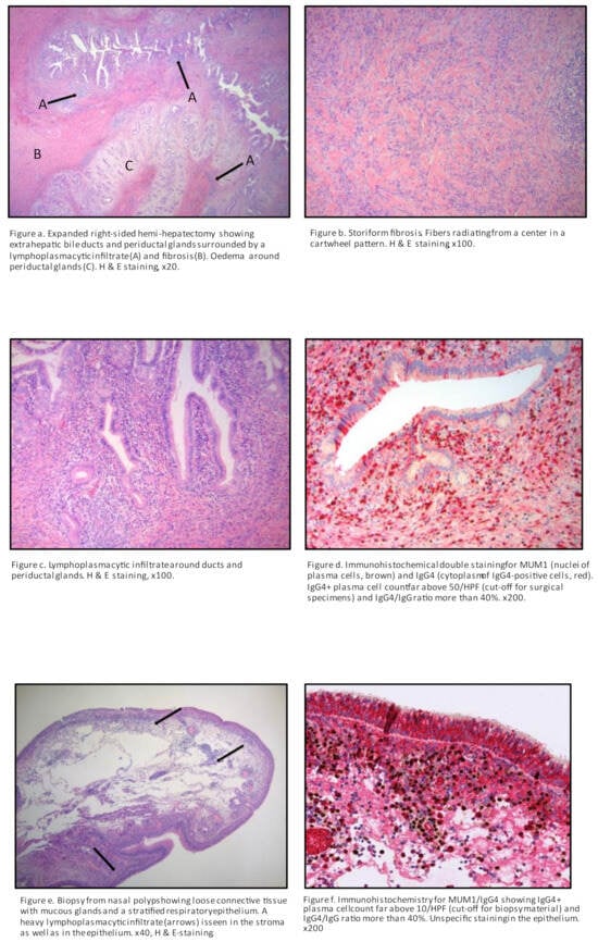 3. Stone, J.H.; Khosroshahi, A.; Deshpande, V.; Chan, J.K.C.; Heathcote, J.G.; Aalberse, R.; Azumi, A.; Bloch, D.B.; Brugge, W.R.; Carruthers, M.N.; et al. Recommendations for the nomenclature of IgG4-related disease and its individual organ system manifestations. Arthritis Rheum. 2012, 64, 3061–3067. [Google Scholar] [CrossRef] [PubMed]