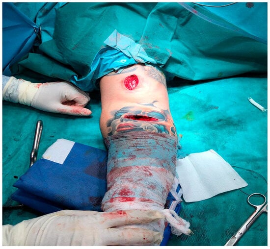 Among the study participants, 45 cases underwent the single-incision technique (Figure 2) with the distal biceps repair system–endobutton and screw, while 24 patients were treated with the modified double-incision technique. The modified double-incision technique (Figure 3) involved the Morrey-modified approach, Krackow sutures, and drill holes. The surgical procedures were performed by experienced orthopedic surgeons at the clinic.
