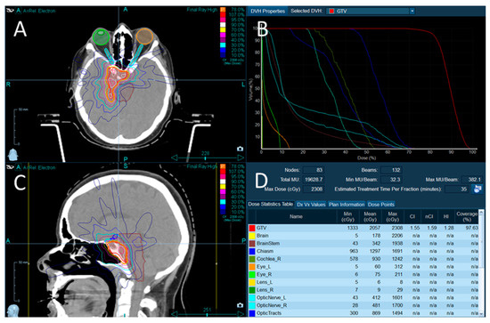 - Milano, M.T.; Grimm, J.; Soltys, S.G.; Yorke, E.; Moiseenko, V.; Tomé, W.A.; Sahgal, A.; Xue, J.; Ma, L.; Solberg, T.D.; et al. Single- and Multi-Fraction Stereotactic Radiosurgery Dose Tolerances of the Optic Pathways. Int. J. Radiat. Oncol. Biol. Phys. 2021, 110, 87–99. [Google Scholar] [CrossRef]