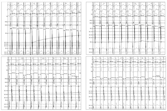- Calvo, D.; Avila, P.; Garcia-Fernandez, F.J.; Pachon, M.; Bravo, L.; Eidelman, G.; Hernandez, J.; Miracle, A.L.; Rubin, J.; Perez, D.; et al. Differential Responses of the Septal Ventricle and the Atrial Signals During Ongoing Entrainment: A Method to Differentiate Orthodromic Reciprocating Tachycardia Using Septal Accessory Pathways From Atypical Atrioventricular Nodal Reentry. Circ. Arrhythmia Electrophysiol. 2015, 8, 1201–1209. [Google Scholar] [CrossRef][Green Version]