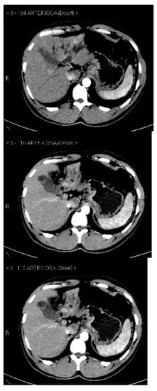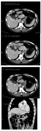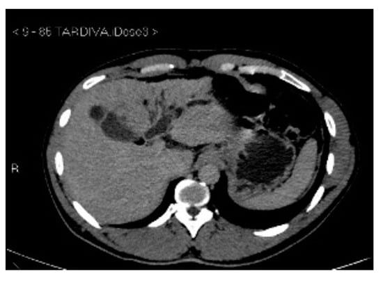 A 47-year-old male patient was admitted to the University Hospital Policlinico of Bari (Italy) with abdominal pain in the right hypochondrium.