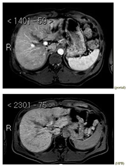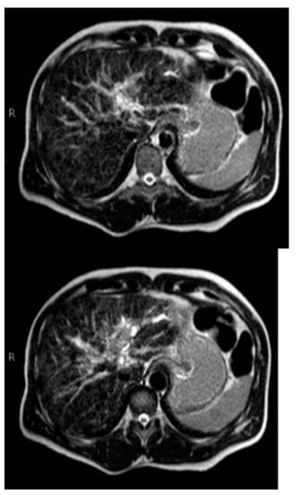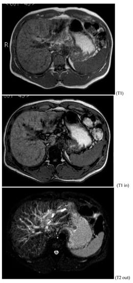 Subsequently, an upper-abdomen Computed Tomography (CT) scan and liver Magnetic Resonance Imaging (MRI) were performed (Figure 1, Figure 2, Figure 3, Figure 4, Figure 5, Figure 6 and Figure 7).