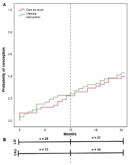Participants in both groups (LSI and CAU) had a wish to become pregnant. They were encouraged to lose 5–10% of their initial body weight as their personal goal during the course of the study. Provided that they could sustain their weight loss for at least three months and complete the one-year study, participants received assisted reproductive care. In the meantime, spontaneous pregnancies could also occur during the one-year study and in the one-year follow-up period after the study. Participants did not receive further interventions if they became pregnant spontaneously during the course of the study.