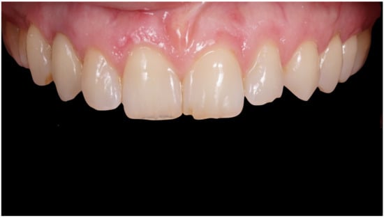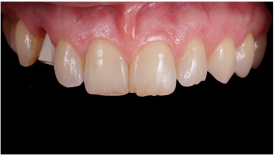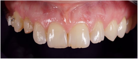 - Belser, U.C.; Grütter, L.; Vailati, F.; Bornstein, M.M.; Weber, H.-P.; Buser, D. Outcome evaluation of early placed maxillary anterior single-tooth implants using objective esthetic criteria: A cross-sectional, retrospective study in 45 patients with a 2- to 4-year follow-up using pink and white esthetic scores. J. Periodontol. 2009, 80, 140–151. [Google Scholar] [CrossRef]