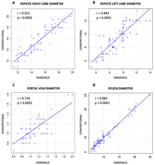 3.2. Comparison between Conventional and Handheld Ultrasound Measurement