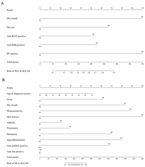 Han, Y.; Jin, Z.; Ma, L.; Wang, D.; Zhu, Y.; Chen, S.; Hua, B.; Wang, H.; Feng, X. Development of Clinical Decision Models for the Prediction of Systemic Lupus Erythematosus and Sjogren’s Syndrome Overlap. J. Clin. Med. 2023, 12, 535. https://doi.org/10.3390/jcm12020535