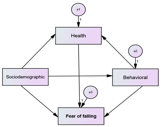In addition, studies on the prevalence of and factors associated with fear of falling in community-dwelling older adults in Brazil are concentrated in more developed regions with a greater population contingent. Fear of falling is a reversible condition [23,24,25]; therefore, studies that investigate the direct and indirect associations with socioeconomic, clinical, and health factors may aid in developing current understanding of the condition and the development of preventative and treatment strategies for this population. Therefore, the aim of this study was to analyze socioeconomic, clinical, and health factors directly and indirectly associated with fear of falling in community-dwelling older adults.