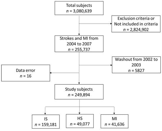 APA StylePark, D., Kim, M.-C., Hong, D., Jeong, Y.-S., Kim, H. S., & Kim, J. H. (2023). Recurrence and Mortality Risks in Patients with First Incident Acute Stroke or Myocardial Infarction: A Longitudinal Study Using the Korean National Health Insurance Service Database. Journal of Clinical Medicine, 12(2), 568. https://doi.org/10.3390/jcm12020568