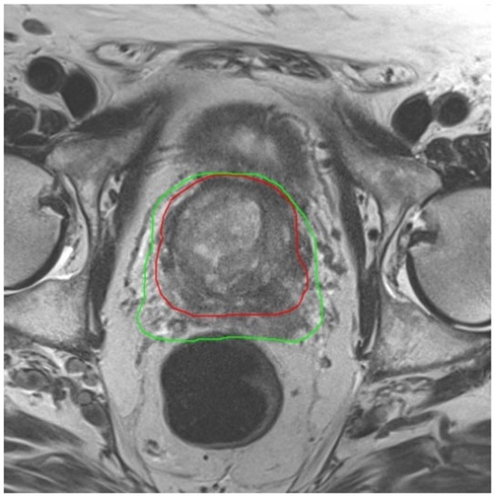 - Choi, H.J.; Kim, Y.S.; Lee, S.H.; Lee, Y.S.; Park, G.; Jung, J.H.; Cho, B.C.; Park, S.H.; Ahn, H.; Kim, C.-S.; et al. Inter- and intra-observer variability in contouring of the prostate gland on planning computed tomography and cone beam computed tomography. Acta Oncol. 2011, 50, 539–546. [Google Scholar] [CrossRef]