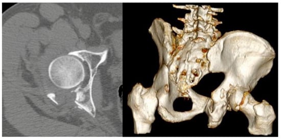 A retrospective multicenter observational study was performed, in four I level trauma centers in Italy. The study was performed according to the principles of the Declaration of Helsinki. Due to the purely retrospective and observational design of the study, local Ethics Committees confirmed that no ethical approval was required. Informed consent was obtained from all subjects involved in the study. For the study aims, all the posterior wall acetabular fractures between February 2018 and February 2020 who underwent internal fixation with the use of spring plate (DePuy Synthes, West Chester, PA, USA) were included. Patients with incomplete data, follow-up shorter than 24 months, pathological fractures of the acetabulum, associated femoral head fractures [14], history of homolateral acetabular fractures were excluded. Diagnosis was made according to the Judet and Letournel classification, on plain radiographs in antero-posterior view and Judet views, iliac and obturator oblique views, and thin-slice CT with multiplanar reconstructions (Figure 1).