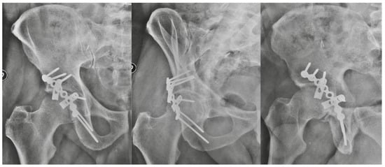 - Lee, C.; Johnson, E.E. Use of Spring Plates in Fixation of Comminuted Posterior Wall Acetabular Fractures. J. Orthop. Trauma 2018, 32 (Suppl. 1), S55–S59. [Google Scholar] [CrossRef] [PubMed]