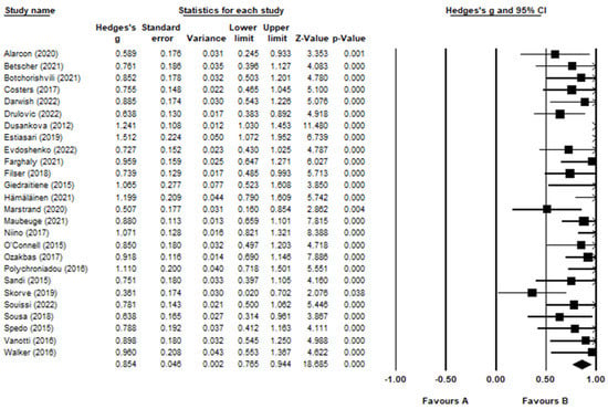 All 26 studies met the criteria for the meta-analysis from those included in the systematic review. All relevant data for the current review and meta-analysis were obtained from numerical information in texts, tables, figures and statistical analysis.