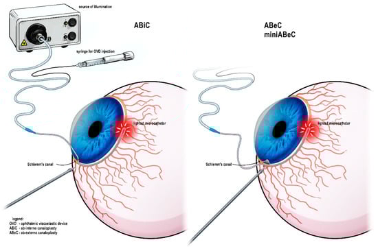 - Khaimi, M.A. Canaloplasty: A Minimally Invasive and Maximally Effective Glaucoma Treatment. J. Ophthalmol. 2015, 2015, 485065. [Google Scholar] [CrossRef]