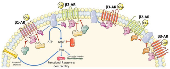- Motiejunaite, J.; Amar, L.; Vidal-Petiot, E. Adrenergic receptors and cardiovascular effects of catecholamines. Ann. Endocrinol. 2021, 82, 193–197. [Google Scholar] [CrossRef] [PubMed]