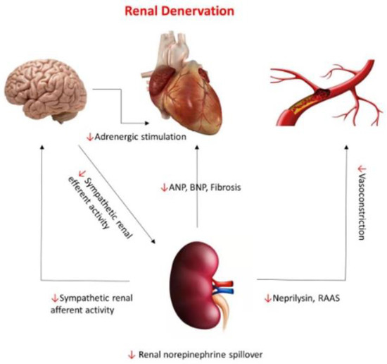 - Kassab, K.; Soni, R.; Kassier, A.; Fischell, T.A. The Potential Role of Renal Denervation in the Management of Heart Failure. J. Clin. Med. 2022, 11, 4147. [Google Scholar] [CrossRef]