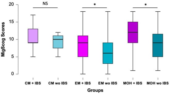 - Arici DÜZ, Ö.; Sari, S.; KiliÇ, Ş.; Helvaci Yilmaz, N.; ÖZge, A.; Polat, B.; TaŞDelen, B. Validity and Reliability of the Turkish Version of the Mig-Scog Scale in Migraine Patients. Neurol. Sci. Neurophysiol. 2020, 37, 29–35. [Google Scholar]