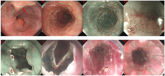 - Simonnot, M.; Deprez, P.H.; Pioche, M.; Albuisson, E.; Wallenhorst, T.; Caillol, F.; Koch, S.; Coron, E.; Archambeaud, I.; Jacques, J.; et al. Endoscopic resection of early esophageal tumors in patients with cirrhosis or portal hypertension: A multicenter observational study. Endoscopy 2023, 55, 785–795. [Google Scholar] [CrossRef]