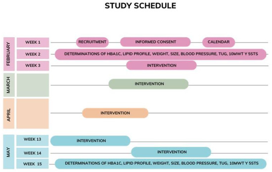During the second week of February, preintervention measurements of HbA1c, lipid profile, blood pressure, height and weight, and TUG, 10MWT, and 5STS will be carried out so that they can be compared with the postintervention measurements.