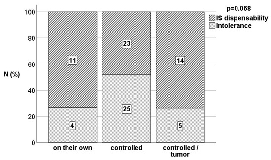 After validation, our simple score for the estimation of tolerance probability could be a straightforward tool for a clinical routine with the key advantage of practicality and clinical proximity, as several scenarios are presented that are clinically most common. It is the patient with non-compliance who, with careful observation without dogmatization, is proven right in 73.3% regarding the dispensability of IS, while the non-tolerant rest must be recognized in time.