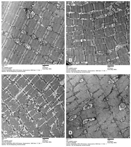 Representative TEM-sections of skeletal muscle biopsies after 12 h of ex-situ machine perfusion or SCS are depicted in Figure 4A–D.