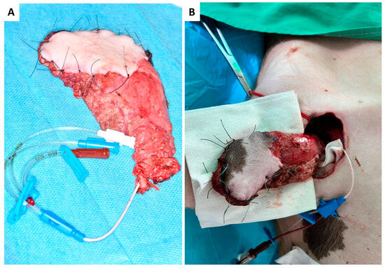 - Barone, A.A.L.; Leonard, D.A.; Torabi, R.; Mallard, C.; Glor, T.; Scalea, J.R.; Randolph, M.A.; Sachs, D.H.; Cetrulo, C.L. The gracilis myocutaneous free flap in swine: An advantageous preclinical model for vascularized composite allograft transplantation research. Microsurgery 2013, 33, 51–55. [Google Scholar] [CrossRef]