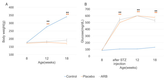 3.1. Effects of ARBs on Body Weight and Blood Glucose Levels in STZ Rats