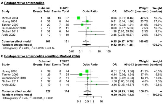 Chicago/Turabian StyleWang, Qi, Yuanyuan Liang, Mengqi Luo, Liwei Feng, and Bo Xiang. 2023. "Comparison of the Duhamel Procedure and Transanal Endorectal Pull-through Procedure in the Treatment of Children with Hirschsprung’s Disease: A Systematic Review" Journal of Clinical Medicine 12, no. 20: 6632. https://doi.org/10.3390/jcm12206632