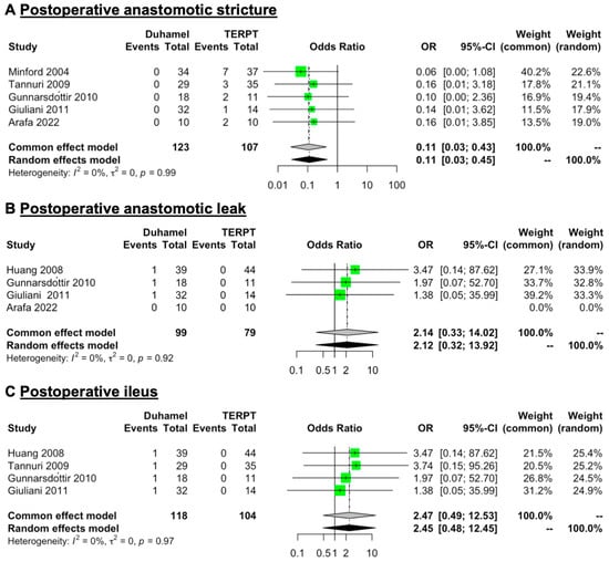 3.5. Postoperative Anastomotic Stricture, Anastomotic Leak, and Ileus