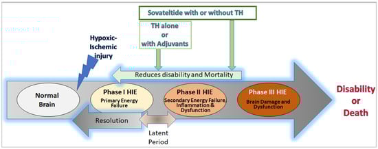 The long-term effects of neuroinflammation and excitotoxicity could prolong the ensuing tertiary phase of HIE, which is characterized by decreased neuronal function and plasticity with increased neuronal cell death [] (Figure 1).