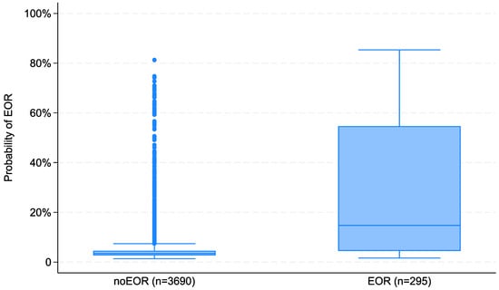 Boxplot of the prediction of the need of emergency operating room (EOR) in the original sample (n = 3985).