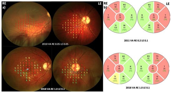 - Petrovic Pajic, S.; Lapajne, L.; Vratanar, B.; Fakin, A.; Jarc-Vidmar, M.; Sustar Habjan, M.; Volk, M.; Maver, A.; Peterlin, B.; Hawlina, M. The Relative Preservation of the Central Retinal Layers in Leber Hereditary Optic Neuropathy. J. Clin. Med. 2022, 11, 6045. [Google Scholar] [CrossRef]