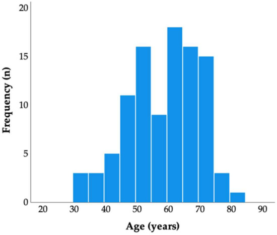 During the research period (2017–2021), a total of 100 people were registered. Among these, 53.0% (n = 53) were male. The descriptive statistics for the variables are as follows: the mean age was 58.5 years ± 11.3, ranging from 32 to 84 years, and the duration of diabetes ranged from 0 to 37 years, with a mean of 9.6 years. The data analysis revealed that mortality could occur at any age and following any duration of diabetes, with no specific age group or duration of diabetes showing immunity to mortality risks (Figure 1).