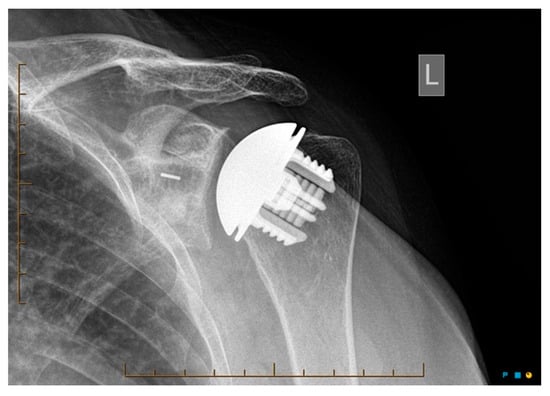 - Raiss, P.; Edwards, T.B.; Deutsch, A.; Shah, A.; Bruckner, T.; Loew, M.; Boileau, P.; Walch, G. Radiographic changes around humeral components in shoulder arthroplasty. J. Bone Jt. Surg. Am. 2014, 96, e54. [Google Scholar] [CrossRef] [PubMed]