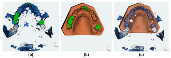 - Lin, H.H.; Chiang, W.C.; Lo, L.J.; Hsu, S.S.; Wang, C.H.; Wan, S.Y. Artifact-resistant superimposition of digital dental models and cone-beam computed tomography images. J. Oral Maxillofac. Surg. 2013, 71, 1933–1947. [Google Scholar] [CrossRef]