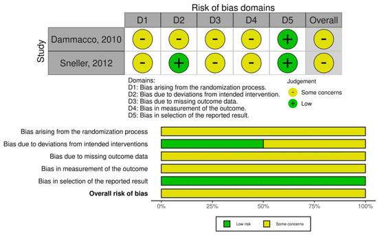 Risk of bias in randomized trials (using RoB 2 tool). Dammacco, 2010 [23]; Sneller, 2012 [29].