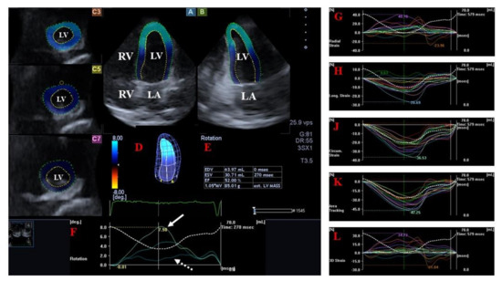 - Nakatani, S. Left ventricular rotation and twist: Why should we learn? J. Cardiovasc. Ultrasound 2011, 19, 1–6. [Google Scholar] [CrossRef]