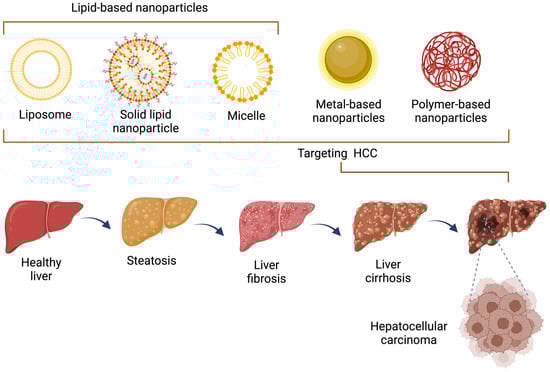 Organic nanoparticles are composed of organic materials such as lipids, proteins, or polymers. They are commonly used for drug delivery in HCC treatment, where drugs are encapsulated within the nanoparticles and then selectively delivered to tumor cells, improving their effectiveness while reducing systemic side effects [68].