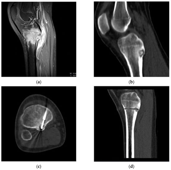 - Chai, J.W.; Hong, S.H.; Choi, J.Y.; Koh, Y.H.; Lee, J.W.; Choi, J.A.; Kang, H.S. Radiologic diagnosis of osteoid osteoma: From simple to challenging findings. Radiographics 2010, 30, 737–749. [Google Scholar] [CrossRef]