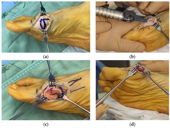 The surgical approach varies depending on the severity of the hallux valgus. The severity is traditionally classified into mild, moderate, and severe based on radiographic measurements such as the hallux valgus angle (HVA) and first–second intermetatarsal angle (IMA). In mild-to-moderate cases, distal chevron metatarsal osteotomy (DCMO) has gained popularity [3] and demonstrated satisfactory results with the advantages of technical simplicity and a short rehabilitation period [4,5].