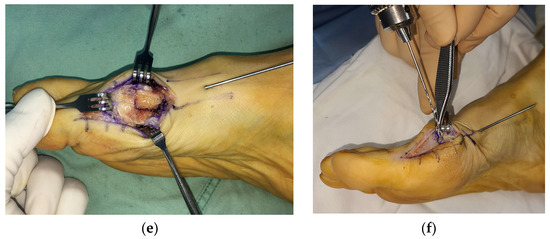 - Biz, C.; Crimi, A.; Fantoni, I.; Tagliapietra, J.; Ruggieri, P. Functional and Radiographic Outcomes of Minimally Invasive Intramedullary Nail Device (MIIND) for Moderate to Severe Hallux Valgus. Foot Ankle Int. 2021, 42, 409–424. [Google Scholar] [CrossRef] [PubMed]