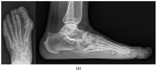 - Coughlin, M.J.; Saltzman, C.L.; Nunley, J.A., 2nd. Angular measurements in the evaluation of hallux valgus deformities: A report of the ad hoc committee of the American Orthopaedic Foot & Ankle Society on angular measurements. Foot Ankle Int. 2002, 23, 68–74. [Google Scholar]