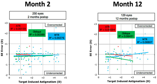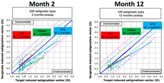 - Chan, T.C.; Ng, A.L.; Cheng, G.P.; Wang, Z.; Ye, C.; Woo, V.C.; Tham, C.C.; Jhanji, V. Vector analysis of astigmatic correction after small-incision lenticule extraction and femtosecond-assisted LASIK for low to moderate myopic astigmatism. Br. J. Ophthalmol. 2016, 100, 553–559. [Google Scholar] [CrossRef] [PubMed]